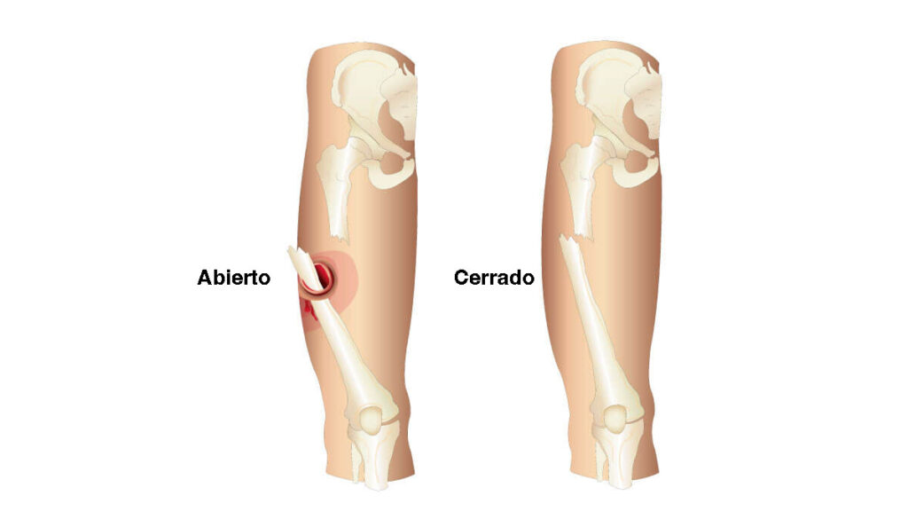 Cuando un brazo o una pierna se dobla de tal manera que el hueso termina perforando la piel. Las fracturas abiertas son las mas peligrosa; estas conllevan el riesgo de infección y de hemorragia.