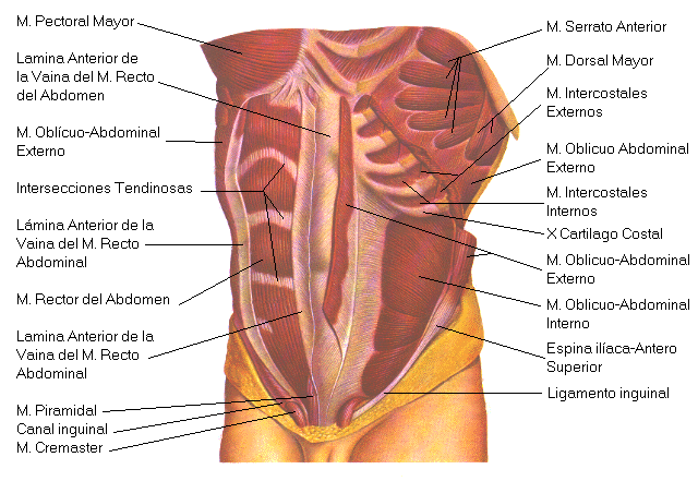 Los utilizados en la respiración : Intercostales, Serratos, en forma de sierra, el diafragma que separa el tórax del abdomen. Los pectorales, para mover el brazo hacia adelante y los dorsales, que mueven el brazo hacia atrás. Los trapecios, que elevan el hombro y mantienen vertical la cabeza.En Los Brazos