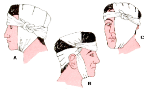 - Descender la venda hacia el ojo afectado, tapar este y pasarla por debajo de la oreja del mismo lado.